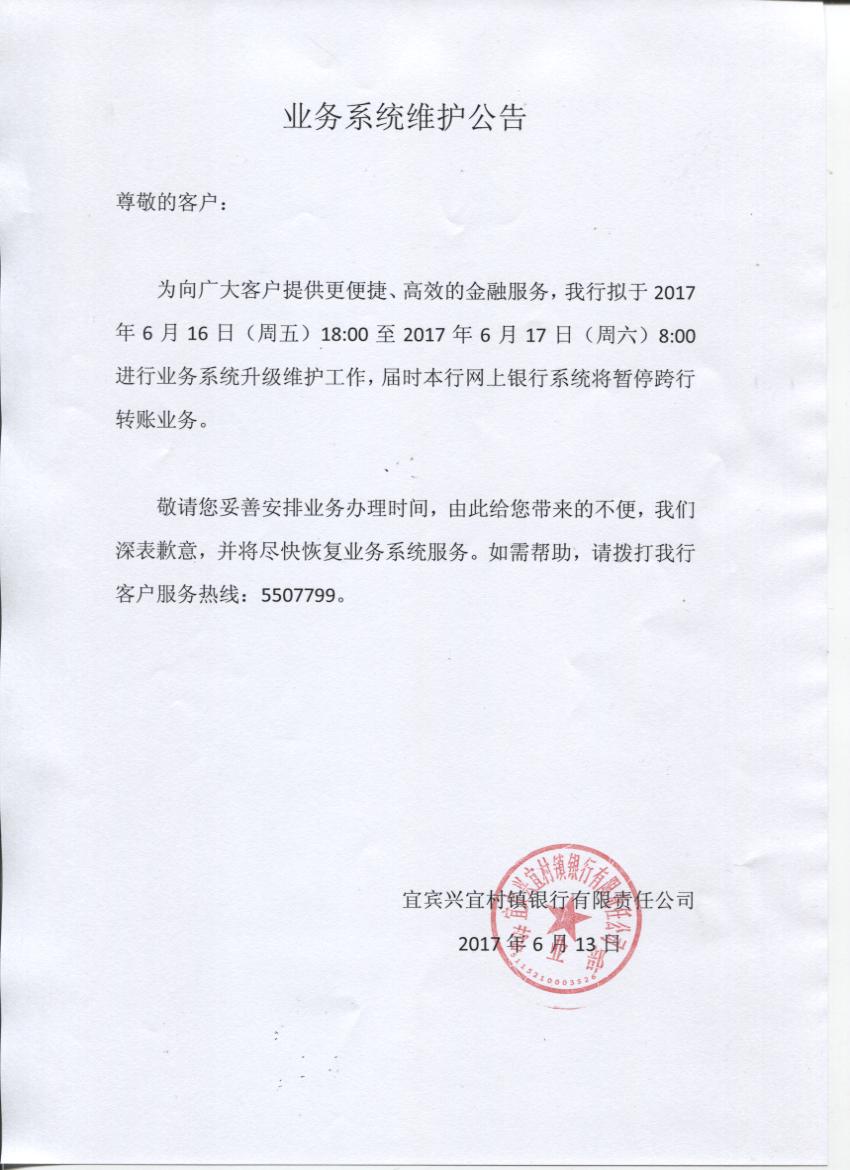 6月16日凌晨暫停網(wǎng)銀跨行轉(zhuǎn)賬通知