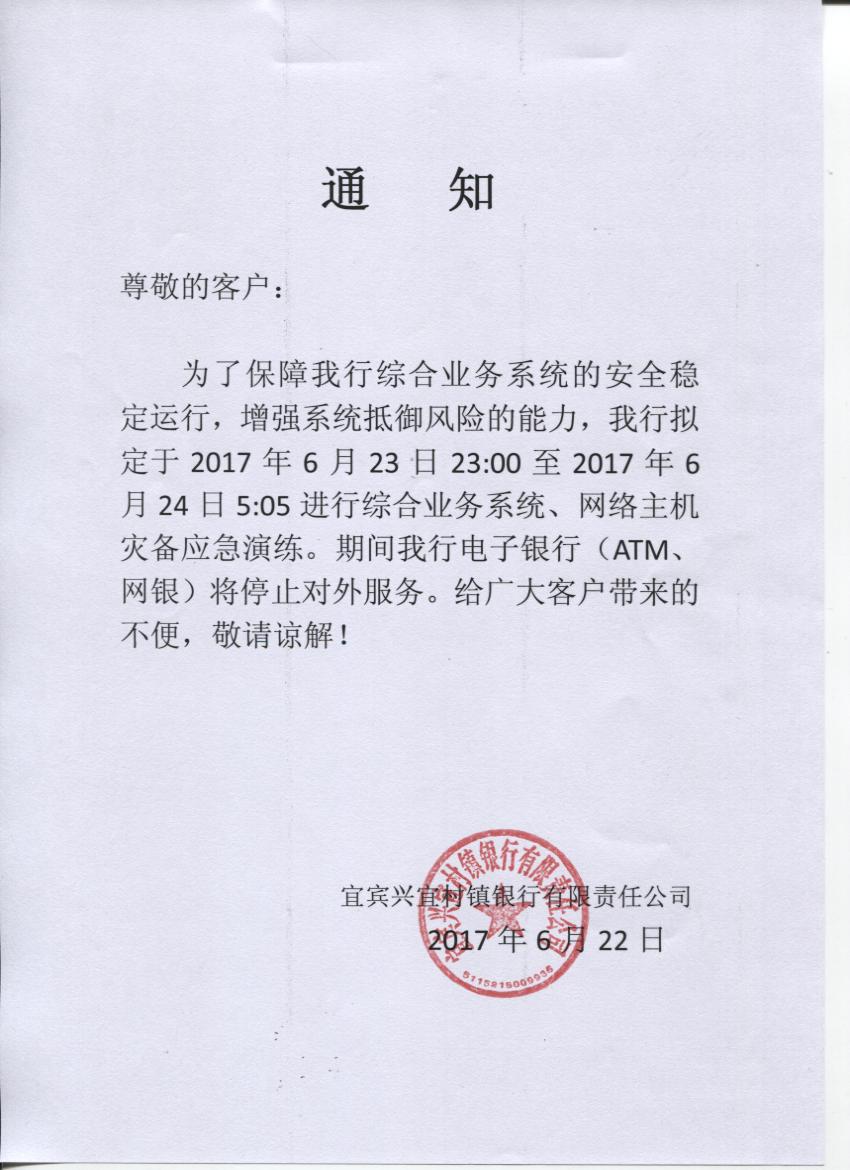 6月24日應(yīng)急演練暫停業(yè)務(wù)通知