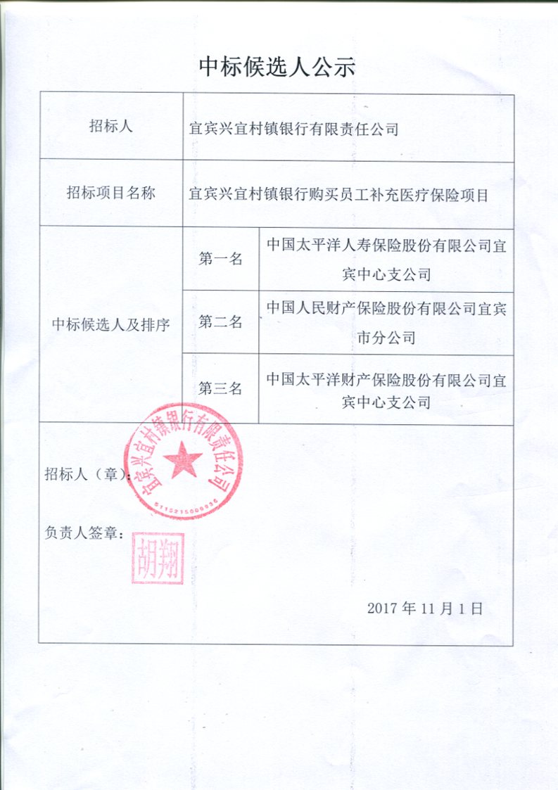 補(bǔ)充醫(yī)療保險項(xiàng)目中標(biāo)候選人公示